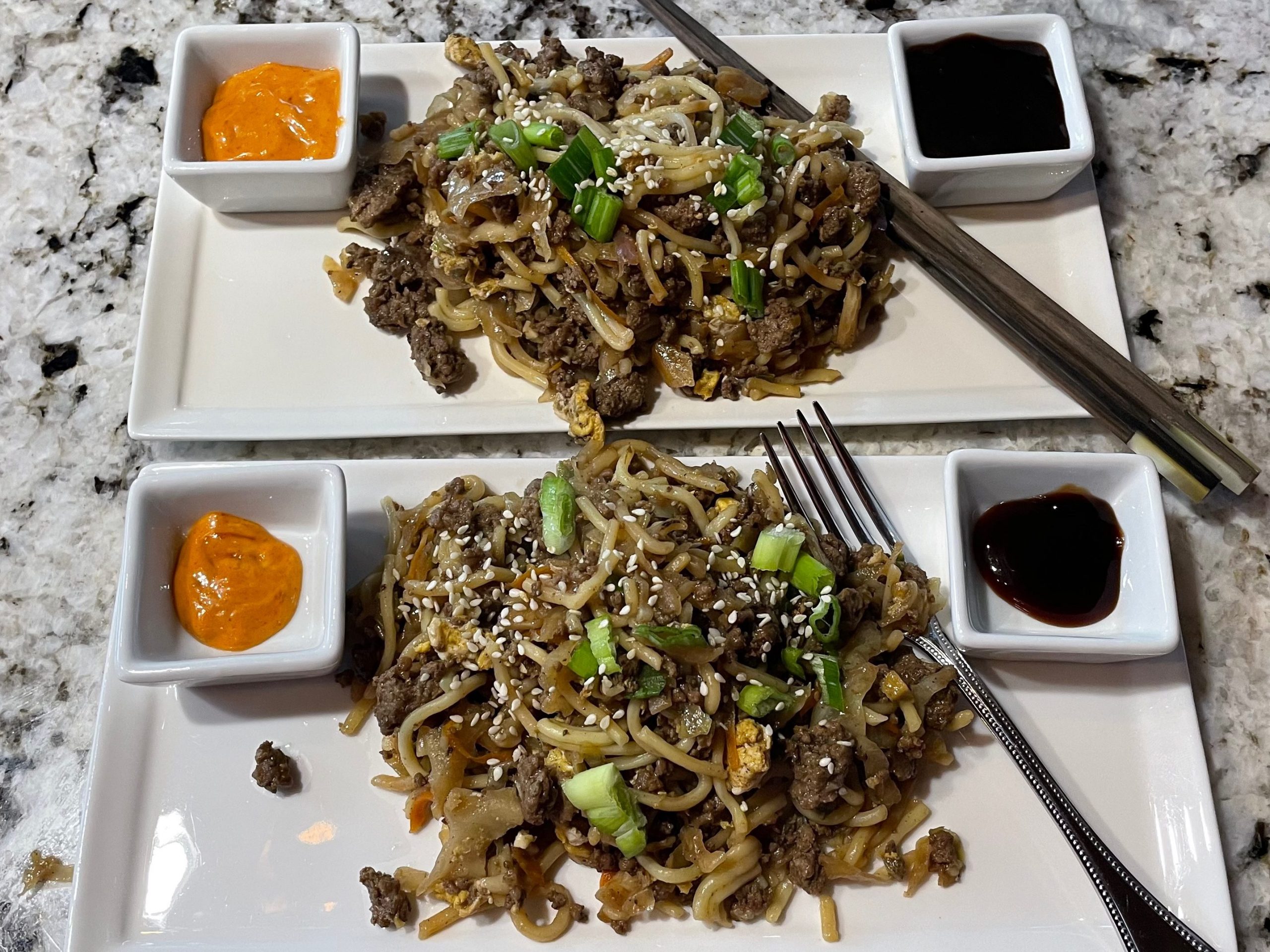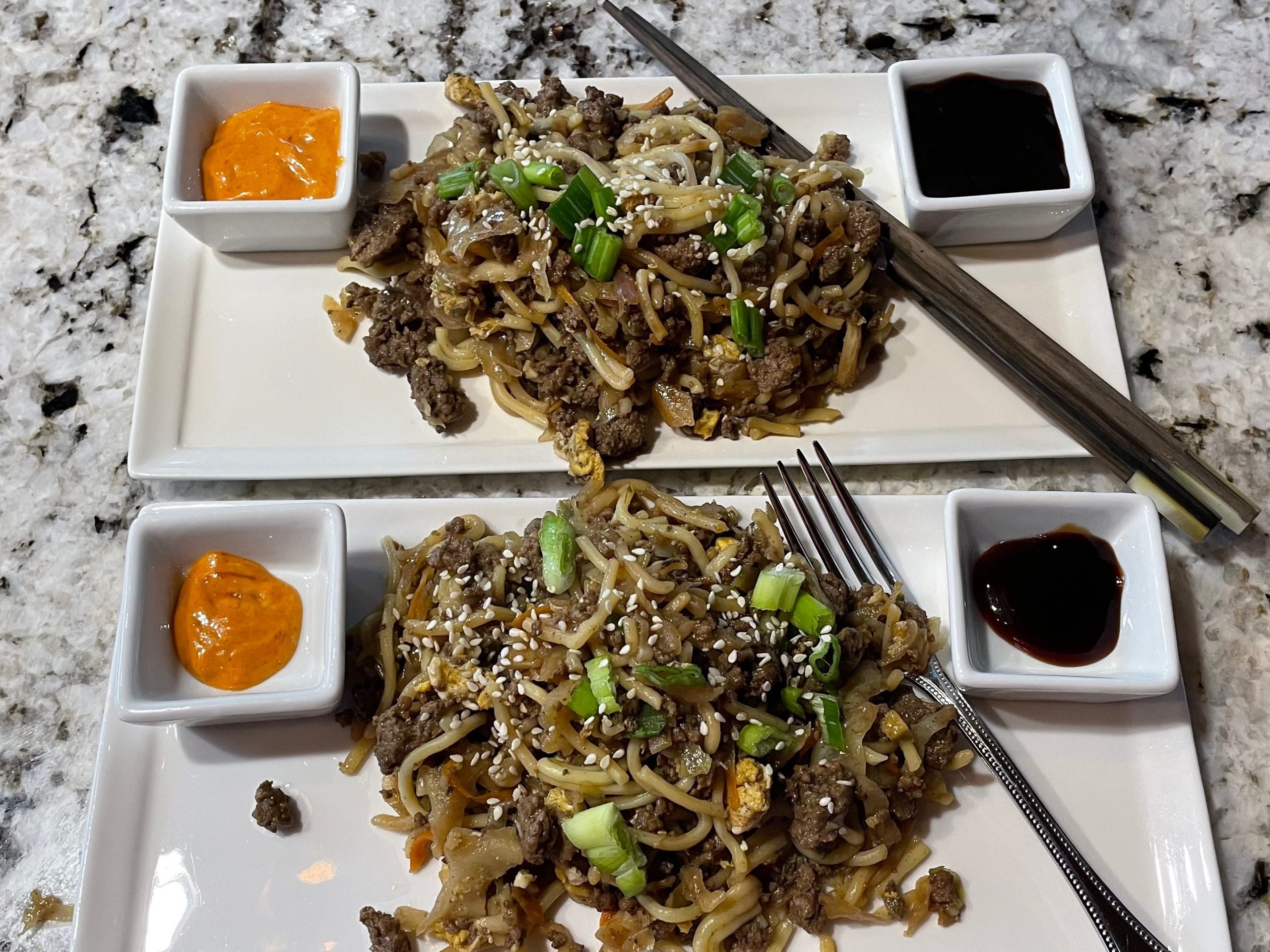 Cooking Asian flavors at home can be intimidating, but the recipe certainly isn’t. The best part is it is cooked entirely on the Blackstone Griddle, so cleanup is a breeze. It’s a hearty meal and can easily be doubled (or tripled) to feed a big crew. The only limit is the size of your griddle!